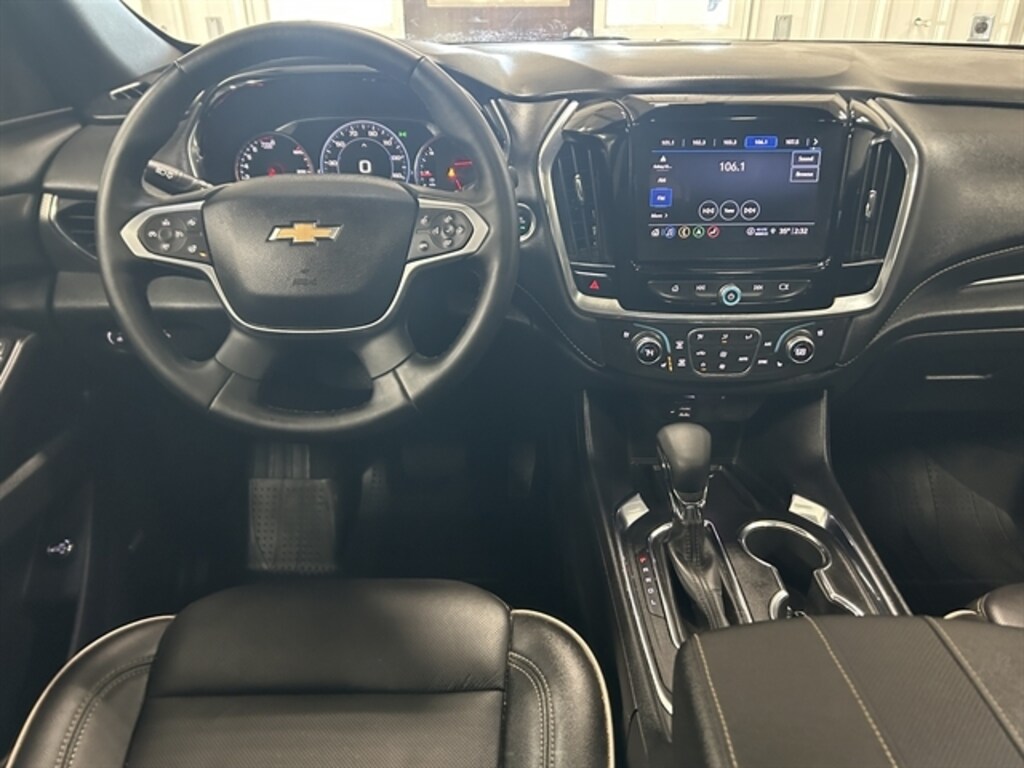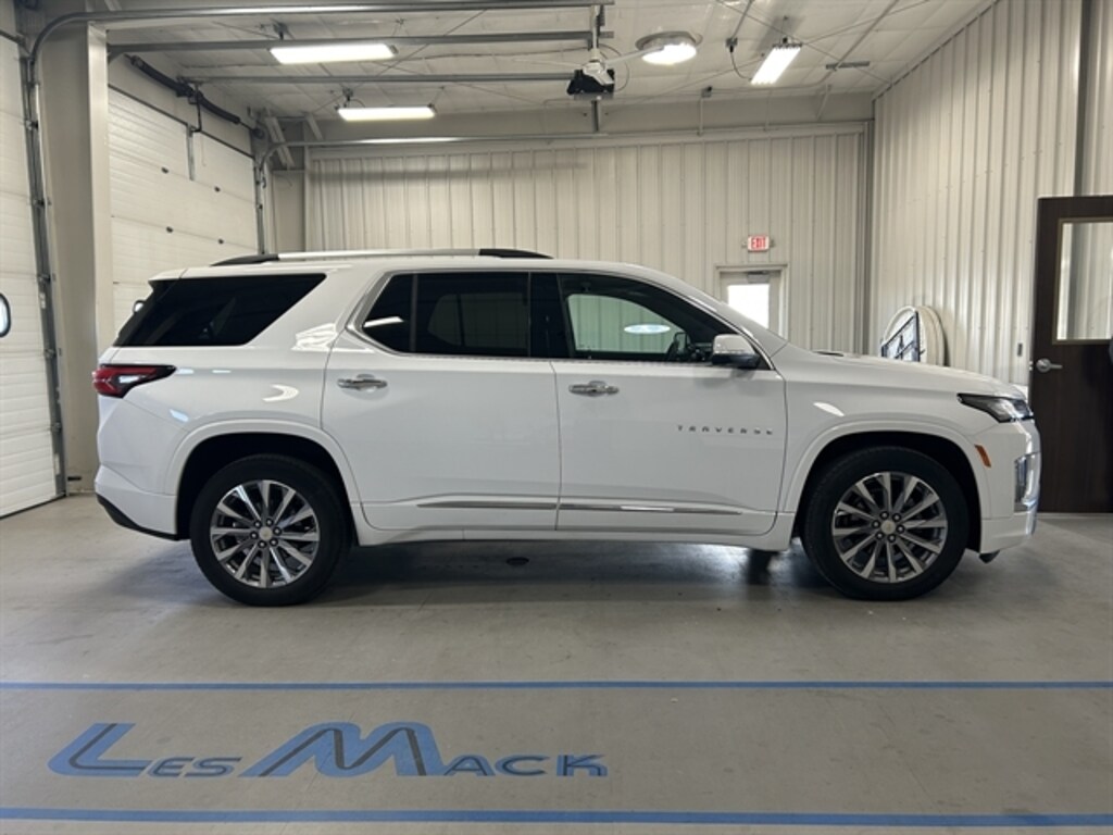 Panoramic Sunroof, Remote Start, Heated & Cooled Front Seats, Heated Rear Seats, Heated Steering Wheel, Our One Owner, Accident Free 2023 Chevrolet Traverse Premier AWD is roomy, refined, and ready for fun in Summit White! Motivated by a 3.6 Liter V6 generating 310hp tethered to a 9 Speed Automatic transmission. This All Wheel Drive SUV is also easy to maneuver in urban settings, and it scores nearly 25mpg on the highway. Sleek and sophisticated, our Traverse carries your crew in style with LED lighting, chrome roof rails, matching accents, 20-inch alloy wheels, dual exhaust outlets, a sunroof, a hands-free liftgate with logo projection, and heated power-folding mirrors with built-in turn signals. Premium appointments are standard in our Premier cabin, including heated/ventilated leather power front seats, heated second-row captain`s chairs, a versatile third row, a heated leather power steering wheel, tri-zone automatic climate control, and plenty of passenger-friendly technology. Leading the way are an 8-inch touchscreen, an 8-inch driver display, WiFi compatibility, wireless Apple CarPlay®, Android Auto®, connected navigation, Bluetooth®, voice recognition, wireless charging, and Bose audio. Chevrolet helps seal the deal with intelligent driver assistance from HD surround vision, enhanced automatic braking, adaptive cruise control, lane-keeping assistance, a digital rearview mirror, blind-zone alert, and more. Our Traverse Premier raises the bar for you and your family with fantastic benefits! Save this Page and Call for Availability. We Know You Will Enjoy Your Test Drive Towards Ownership!