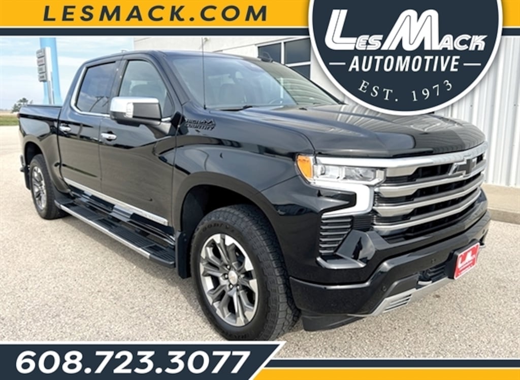 Heated & Cooled Front Seats, Heated Steering Wheel, Remote Start, Our striking One Owner, Accident Free 2024 Chevrolet Silverado 1500 High Country Crew Cab 4X4 with the Z71 Off Road Pack is an uplevel adventure machine in Black! Motivated by a 5.3 Liter V8 delivering 355hp to a 10 Speed Automatic transmission. This Four Wheel Drive truck also boasts a 2-speed transfer case and high-capacity suspension for composed handling even on rugged terrain, and it sees nearly 20mpg on the highway. Style meets strength in our Silverado`s design with 20-inch alloy wheels, chrome side steps, a spray-on bedliner, tonneau cover, LED fog lamps, a power up/down tailgate, and perimeter lighting. You`re in the command position in our High Country cabin. Here you`ll find heated/ventilated leather power front and heated rear seats, a heated-wrapped power steering wheel, dual-zone automatic climate control, a power sliding rear window, and remote start. You can enjoy a high-tech cockpit with a 12.3-inch driver display, a 13.4-inch touchscreen, Google Built-in, WiFi compatibility, wireless Apple CarPlay®/Android Auto®, voice control, wireless charging, Bluetooth®, and Bose audio. Stay safe as you work hard with Chevrolet`s adaptive cruise control, a bed-view camera, trailer blind-spot monitoring, enhanced automatic braking, lane-keeping assistance, forward collision warning, pedestrian detection, HD surround vision, parking sensors, and more. It`s time to raise the bar with our remarkable Silverado High Country! Save this Page and Call for Availability. We Know You Will Enjoy Your Test Drive Towards Ownership!