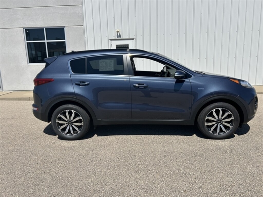 Premium Package, Panoramic Sunroof, Heated Steering Wheel, Heated Seats, Our great looking Accident Free 2018 Kia Sportage EX AWD with the Premium Pack is a stand-out in Pacific Blue! Powered by a 2.4 Liter 4 Cylinder that offers 181hp paired with a responsive 6 Speed Automatic transmission with Sportmatic. Our All Wheel Drive has nicely-weighted steering and excellent maneuverability as you enjoy nearly 30mpg on the highway! Our Sportage has the rock-solid stance you desire, with its bright chrome accents, rear spoiler, a panoramic sunroof, and clear projector beam headlights. Built for your lifestyle, the Sportage EX interior is incredibly spacious, with plenty of room for your tallest friends and all their gear. Imagine yourself settling into the nicely bolstered heated leather-trimmed seats, then check out the push button start, rearview camera display, heated steering wheel w/controls, drive mode select, Bluetooth®, UVO eServices with a touch-screen display featuring Android Auto®, Apple CarPlay®, and other comfort and convenience features just waiting to spoil you. In challenging driving situations, our Kia also ensures your sense of security with ABS, hill start/downhill brake control, electronic stability control, a multitude of advanced airbags, and even its innovative Iso-Structure unibody that boasts chassis rigidity based on superior high-strength steel. Practically perfect, your Sportage EX awaits! Save this Page and Call for Availability. We Know You Will Enjoy Your Test Drive Towards Ownership!