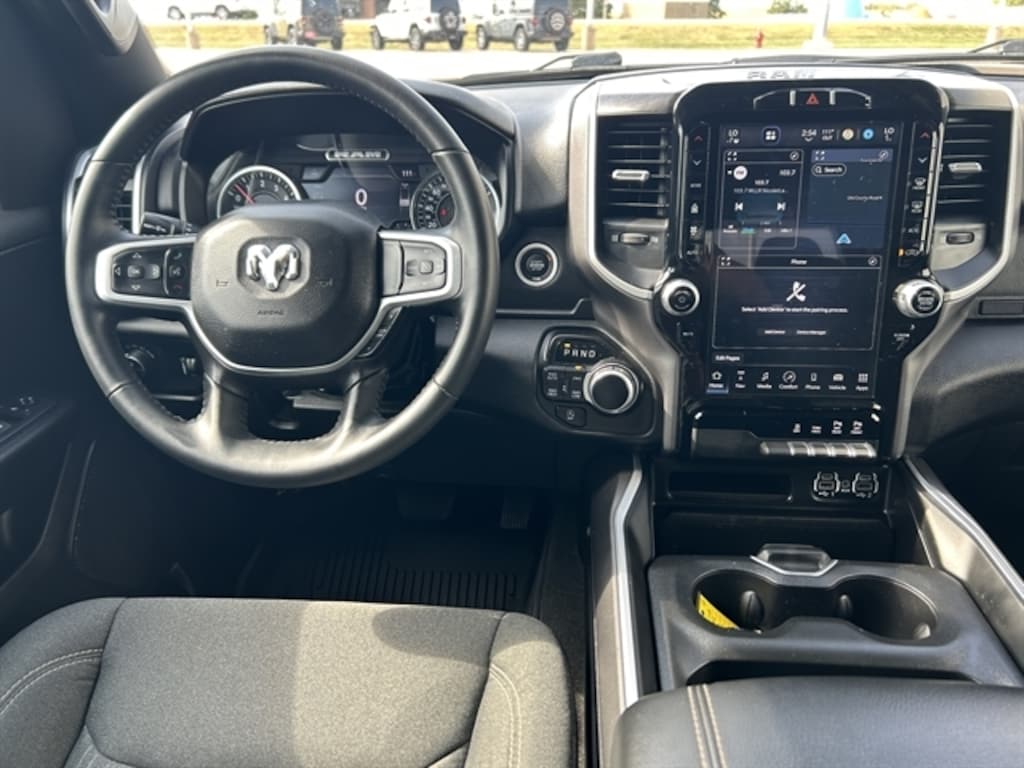Night Edition, Level B Equipment Group, Heated Seats, Heated Steering Wheel, Our bold One Owner, Accident Free 2024 RAM 1500 Big Horn Crew Cab 4X4 Night Edition with the Level B Equipment Group is here for people who work hard and want to do more in Billet Silver Metallic! Powered by a 5.7 Liter eTorque HEMI V8 providing 395hp to an 8 Speed Automatic transmission for smart capability. This Four Wheel Drive truck also features a Class III bumper hitch for easier towing, and it returns nearly 22mpg on the highway with responsive handling and a rugged design. Our RAM 1500 stands strong and looks good with our Night Pack, which adds 20-inch black alloy wheels, black-tipped dual exhaust outlets, running boards, tonneau cover, body-color bumpers with rear step pads, plenty of stealthy black accents, and a limited-slip rear differential. Many rewarding details are standard in our Big Horn cabin, starting with deluxe cloth heated front seats to a leather-wrapped heated steering wheel, air conditioning, a RAM clean-air system, keyless access, pushbutton ignition, cruise control, door-sill scuff plates, and clever cargo space. For intelligent infotainment, there`s a 12-inch touchscreen with voice control, navigation, Bluetooth®, and a nine-speaker sound system. Confident trucking comes into view with rewarding RAM features like a rearview camera, electronic stability/traction control, hill start assistance, tire pressure monitoring, trailer sway damping, a rear-seat reminder, advanced airbags, and more. With all that, our 1500 Big Horn takes on tough challenges like a champ! Save this Page and Call for Availability. We Know You Will Enjoy Your Test Drive Towards Ownership!